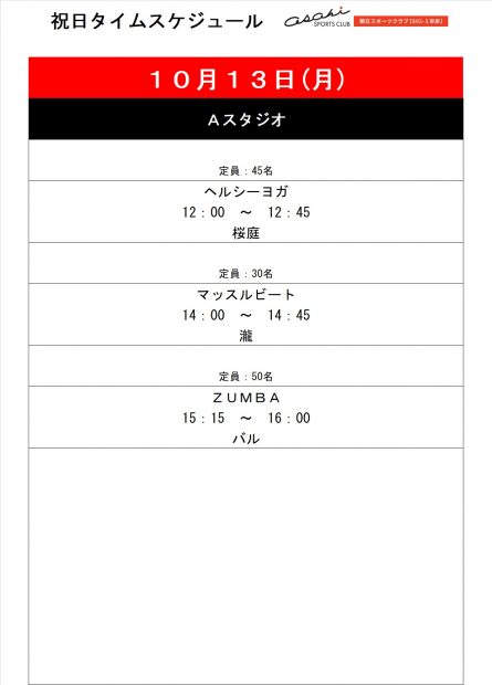 【祝日プログラム】10月13日(月・祝)