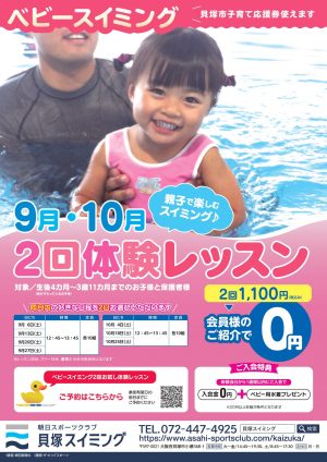- 2025.08.199月10月ベビースイミング2回体験レッスン♪