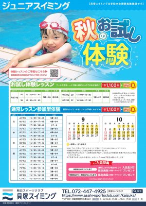 - 2025.08.199月10月ジュニアスイミング秋の体験レッスン♪