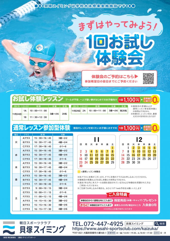 11月12月ジュニアスイミング体験レッスン